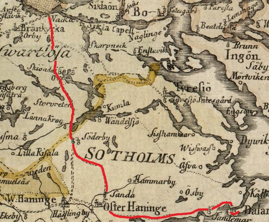 I sidhuvudet syns en betydligt äldre karta: ”Wäg Charta öfwer Stockholm” 1772, av Jac. Joh. Gyllenborg [Public domain], via Wikimedia Commons