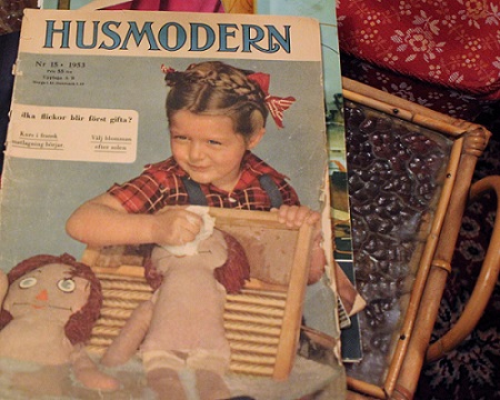 Det svenska folkhemmet verkar en del idag längta tillbaka till. Och för oss som var barn då är det lätt att bara minnas idyllen när vi tittar tillbaka och kollar gamla kort. Men frågan är hur det skulle vara att leva i det. På Nordiska Museets utställning “Folkhemslägenheten” såg jag veckotidningsomslaget ovan, med den lilla flickan vid tvättbrädan och texten: “Vilka flickor blir först gifta?”.
