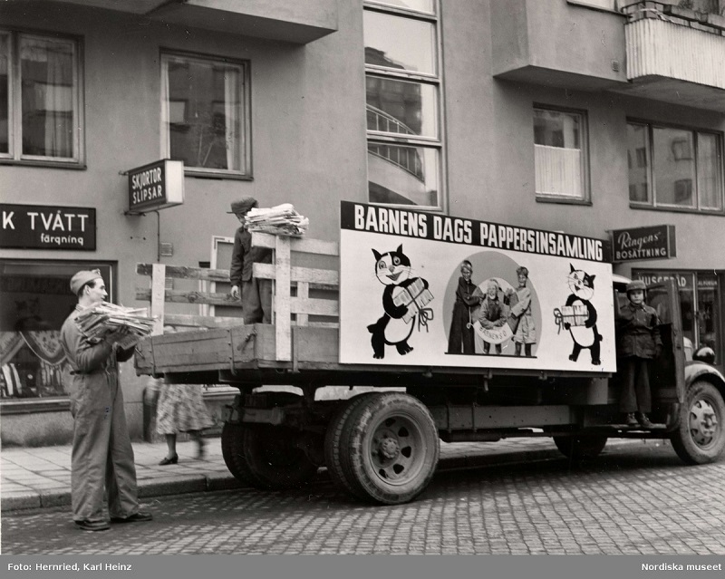 Bilden ovan: Lastbil för Barnens dags pappersinsamling av Hernried, Karl Heinz, Nordiska Museet (CC BY-NC-ND)