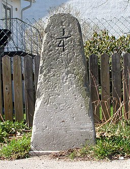 En milstensom markerar 1/4 mil står i korsningen Perstorpsvägen/Tårtvägen.