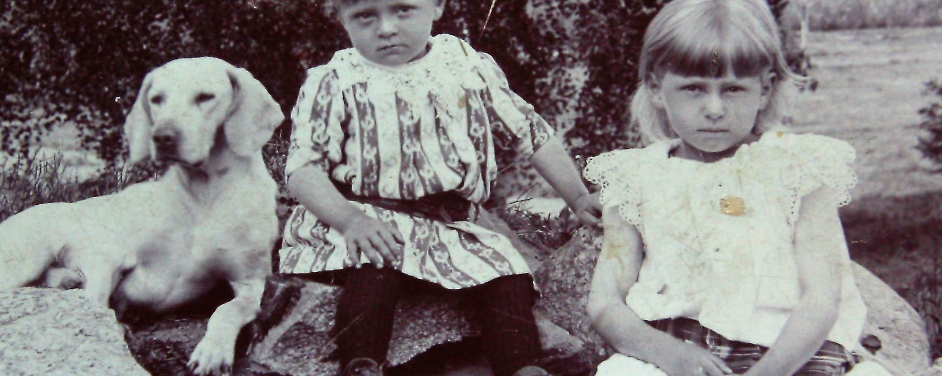Anna från Burspråksvägen berättar: Bilden ovan är från 1892 och tagen på säteriet Elgmyra i Östergötland, där min farfar Harald föddes. Den visar hunden Dick, en Golden Labrador, samt syskonen Annie och lille Harald i kolt.