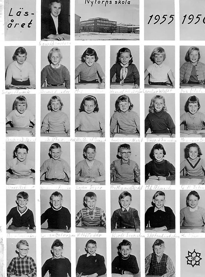 Roger bodde på Blåsutvägen 32, det var hans föräldrar som hade livsmedelsbutiken mellan nr 30 och 32. Här är hans klasskort.