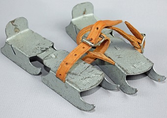 Anna minns också barndomens vintrar: Precis så här såg mitt allra första par skridskor ut. De spändes fast på pjäxorna.