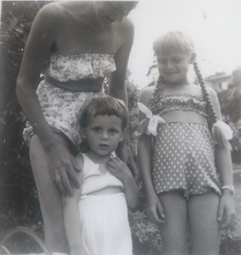Att jag ser ut som en kille beror nog också på att jag inte har på mig ”BH”-överdelen som hörde till soldressen – precis likadan som mammas. Hon hade säkert sytt dem båda. Kanske var den mera till fint, inte när man var med ungarna på gårn? En gång drog en busig kille i resåren och sa retsamt: ”Vad ska du ha den här till?” Jag letar fortfarande efter ett dräpande svar.