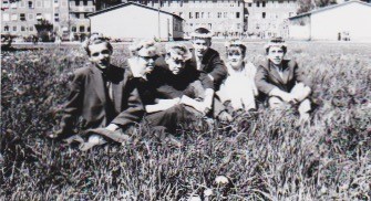 Till sist: Här slappar delar av klass 9g3 i gröngräset utanför skolgården dagarna före avslutningen 1961.