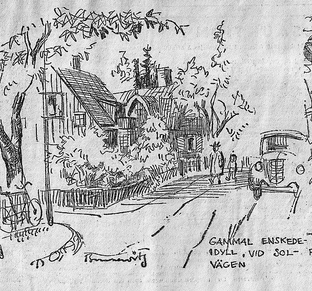 Han bor fortfarande kvar i samma hus som han själv både ritat och byggt, och minns exakt när han satte spaden i marken: ”På självaste Gustav Adolfsdagen, den 6 nov 1908, och klockan på Enskede gård slog just 12”.