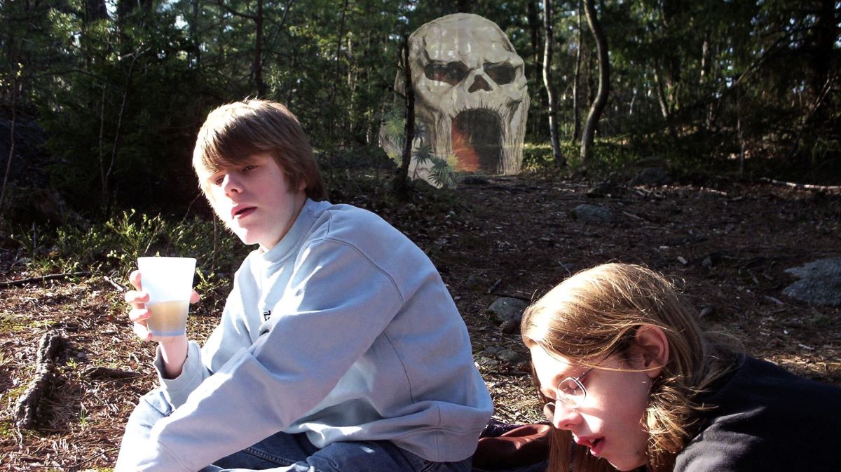 Vinjettbild: Sönerna på picknick i Tunnelbaneskogen.