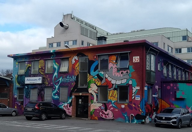 Vid vår rundvandring upptäckte vi ett hus helt täckt av graffiti, och i lokaltidningen från 22 november 2019 läser jag den troliga förklaringen: