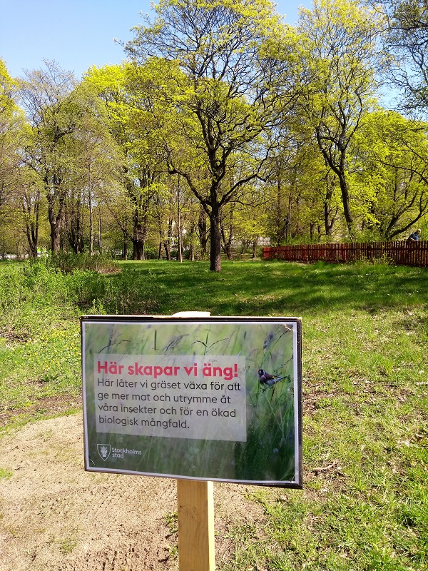 I parken finns ett litet område med odlingslådor, en skylt med rubrik ”Här skapar vi äng!” och en annan med information om spökvandringar. När vi var där repeterade rockbandet, som nu är hyresgäst i dödgrävarbostället, med öppna dörrar och fönster i det vackra vädret.