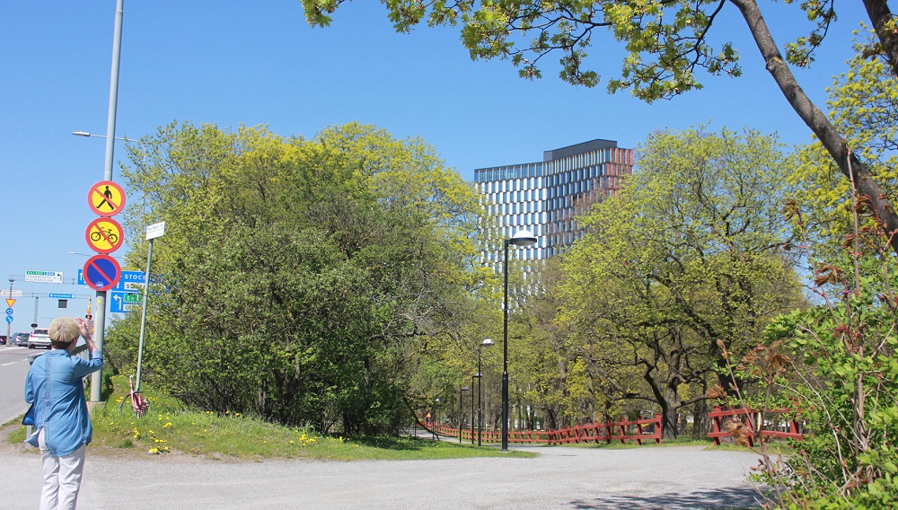 Det där stora glaskolossen med kurvig fasad till åbäke till hus vilket syns i bakgrunden bakom det gamla, stora järnkorset måste ha byggts under de senaste ca 20 åren. DET fanns i alla fall inte på min tid!