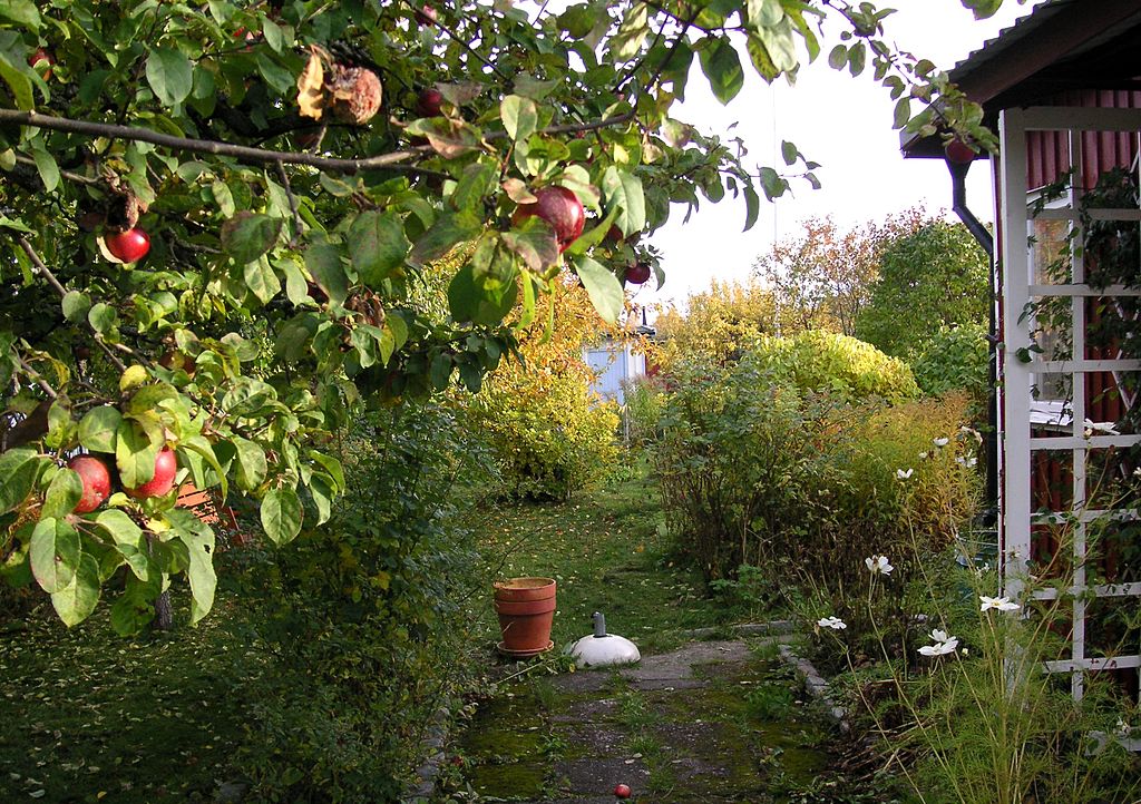 Bilden högst upp på sidan visar Skarpnäcks koloniträdgårdsområde hösten 2010, av Holger.Ellgaard (CC BY-SA 3.0) via Wikimedia Commons