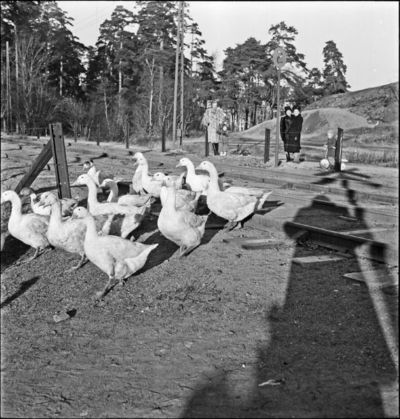 Kanske det finns gamla enskedebor som tagit egna kort på gässen? Bilderna på den här sidan togs alla den 20 november 1948 av fotografen Gunnar Ekelund och finns på Spårvagnsmuseet.