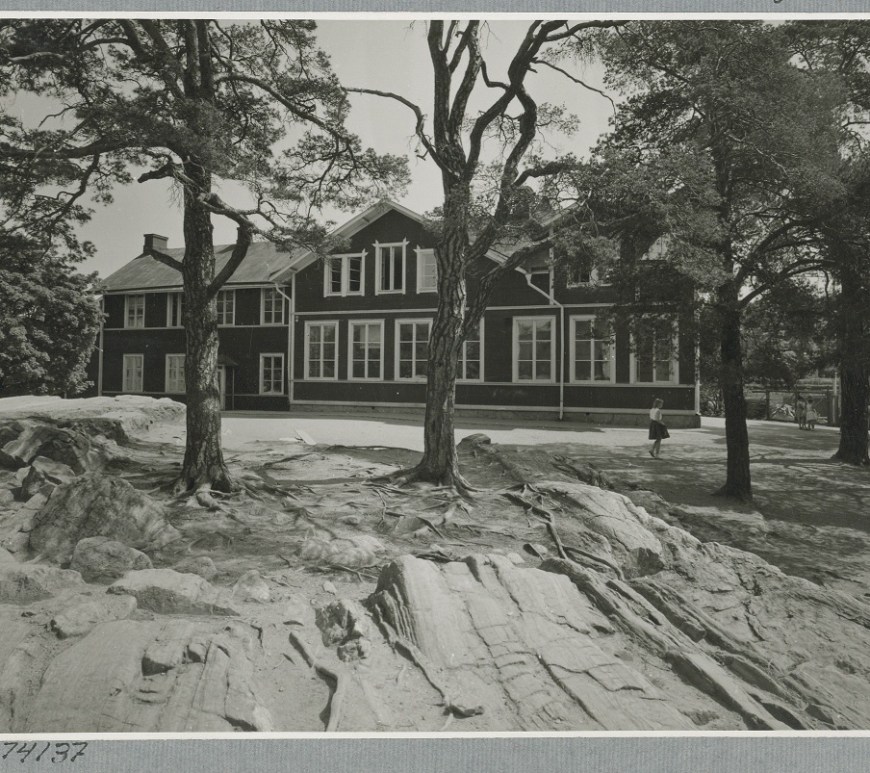 Gamla Röda Skolan vid nuvarande Guldsmedsvägen/Röda backens väg byggdes 1903 och skulle egentligen ha rivits långt innan vi fyrtiotalister började skolan. Men den stora träkåken blev kvar ända till 1977, även om den inte var skola de sista tio åren.